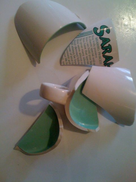 Saturday morning I was rushing to leave the house to pick Kelli up for brunch. In my haste I knocked a mug off the counter and it shattered.