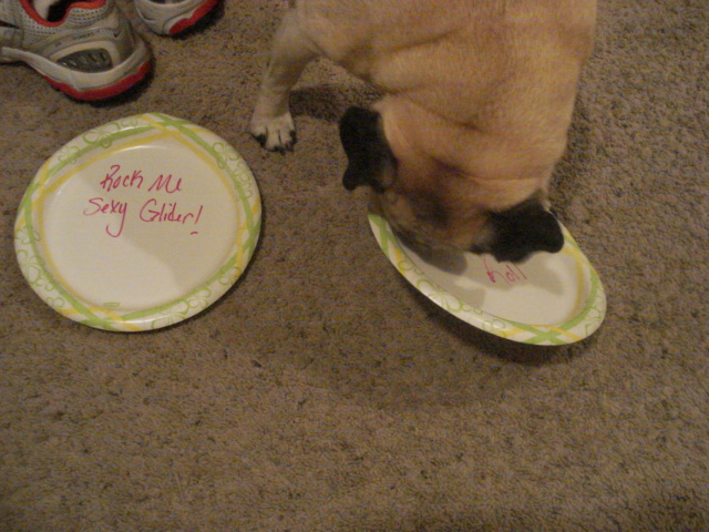 Why, then, do I reside upon this particular blog? A cinematic example, I believe, would be of much use here. With the passion that this Puggish creature throws herself at a mere short tail, so do I choose to throw my own self at Miss Nielson’s short tales. Passionately I chase them, spinning words round and round, snorting comments and drooling innuendo as I go in dizzying succession. They are, to me, a simple pleasure, but a tauntingly alluring one at that. For as Captain Daisy and Commadore Bellum elegantly show us, even things of menial importance, be they the stub of a tail or a daily occurrence of equal depth, may bring about unsurpassed joy to millions! Let us each, with the blissfully ignorant fervor of a pug, pursue the Ass of life for as long as our stumpy little legs may carry us! In this, there is great joy.